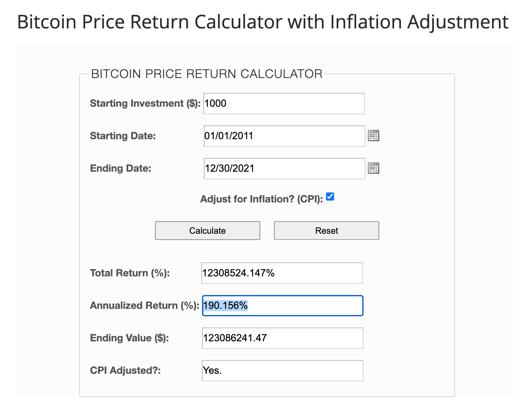 - Inflation is eating away at your low-yield savings. Average yearly returns on Bitcoin are >150% in the last decade. Diversifying your net worth with hard assets that appreciate is smart.