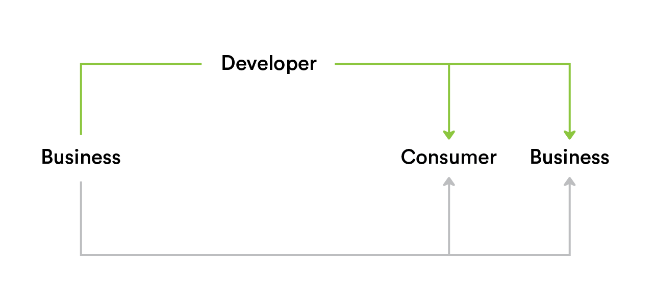 The developer A using your product will usually deal with a clear-cut set of competitors. But sometimes, the end-user B will be exposed to a whole different and much broader range of viable alternatives.